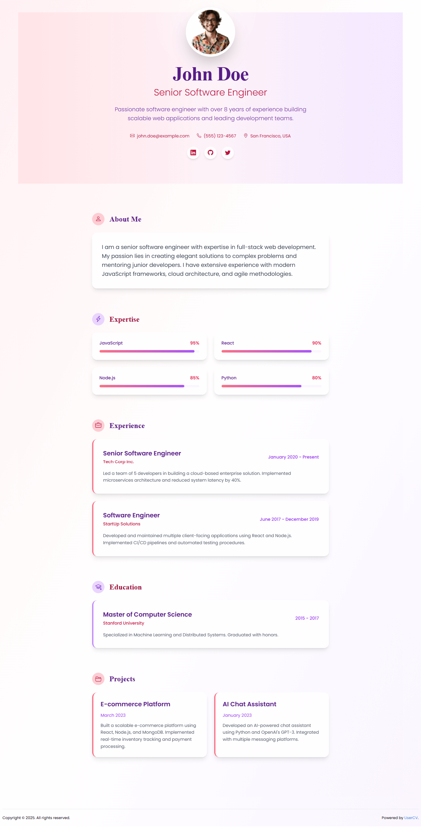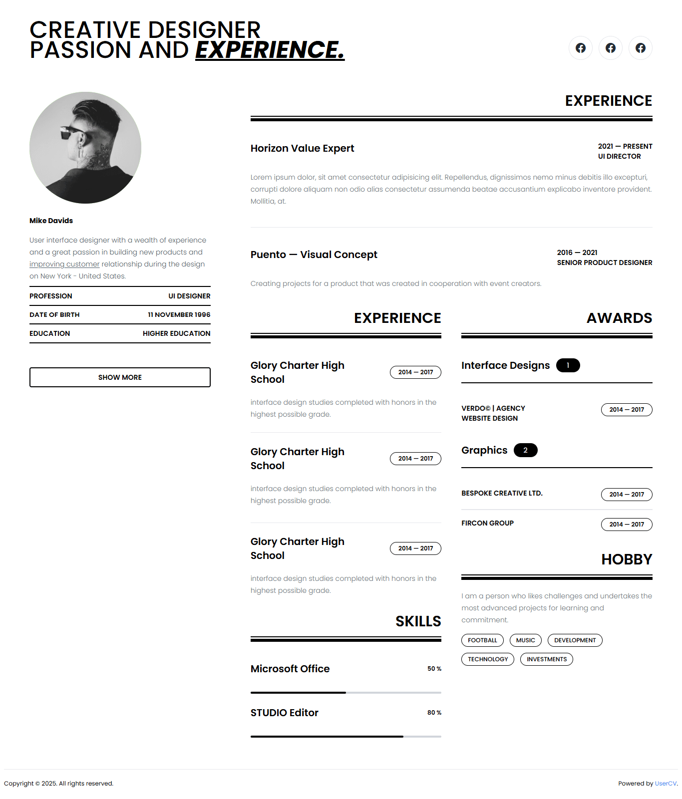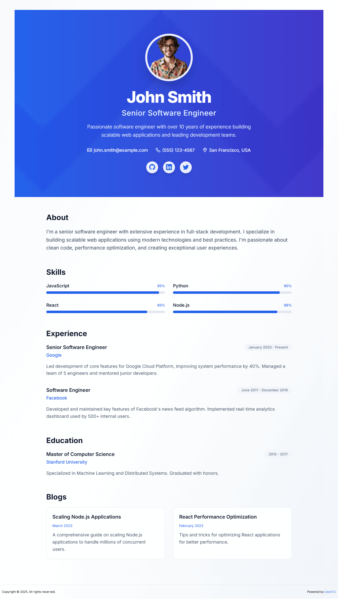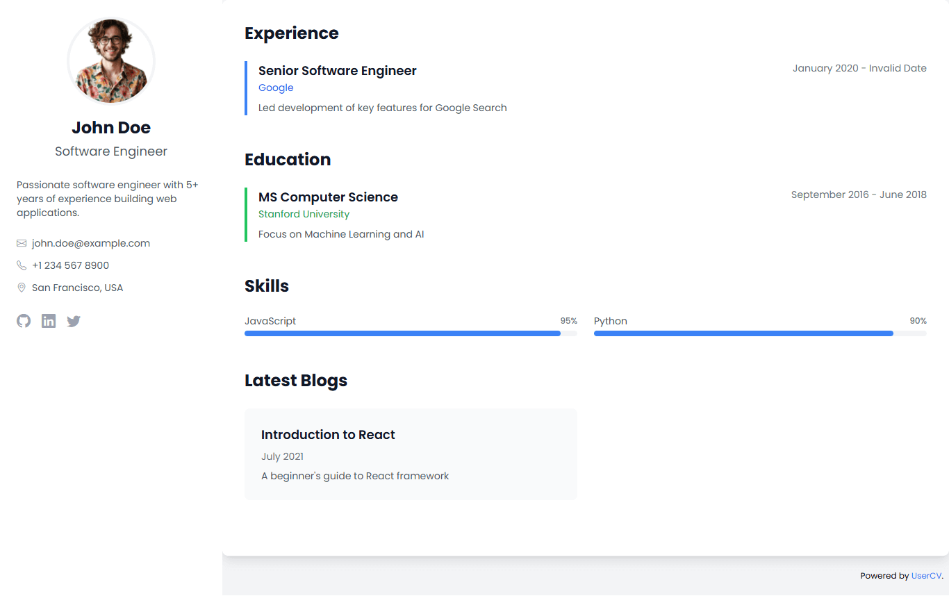 Create a stunning single-page website that showcases your skills, experience, and personality. No coding required.